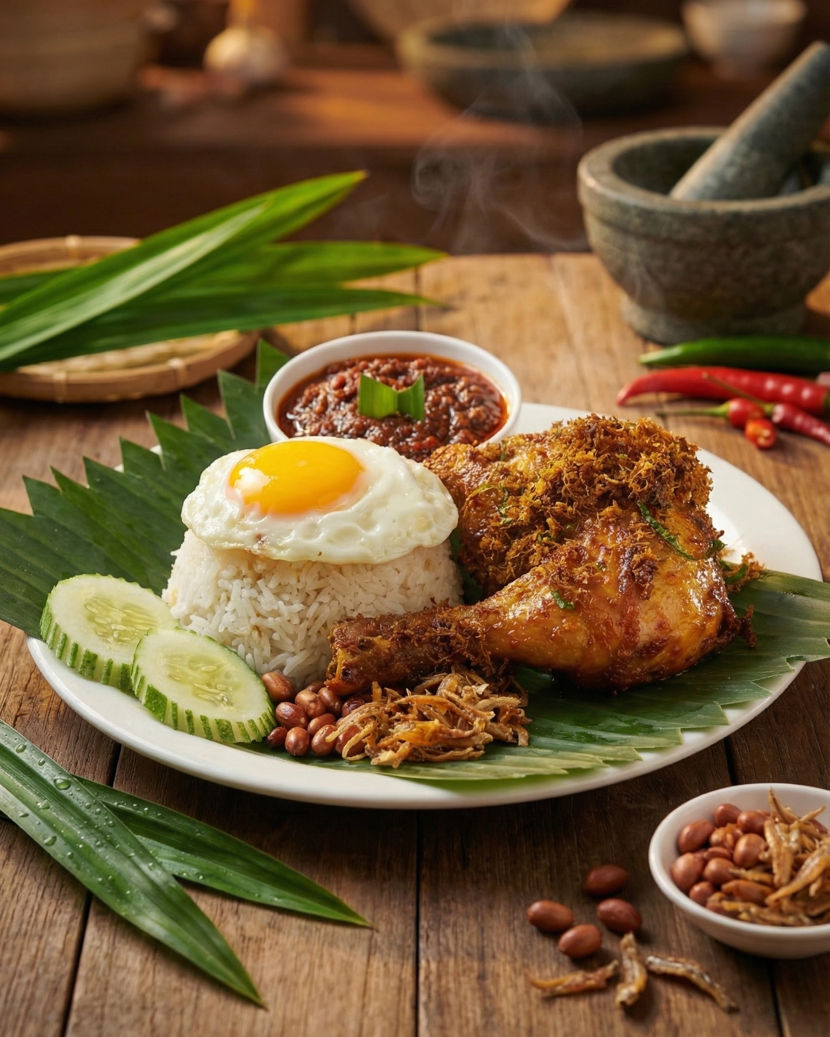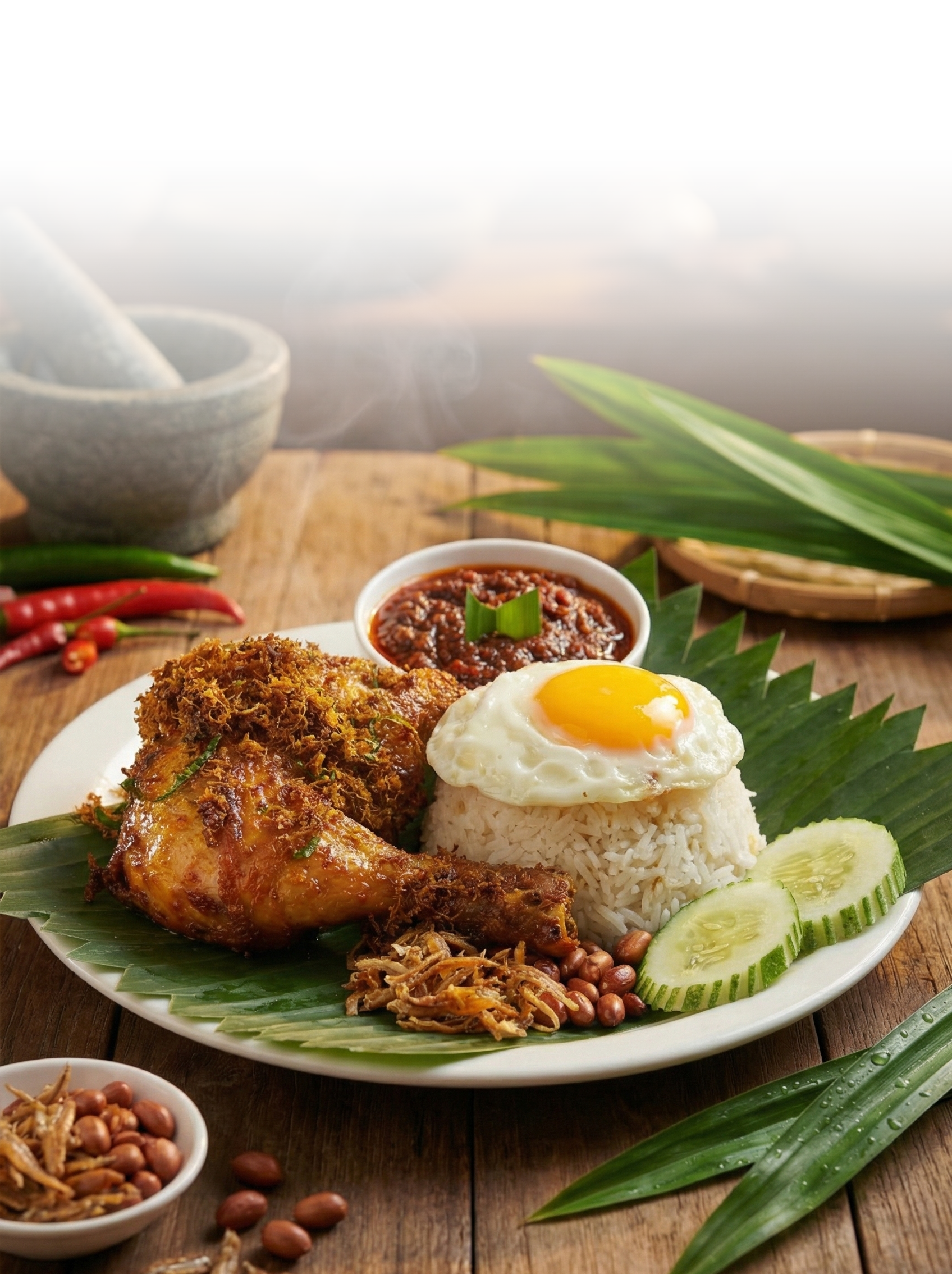 Menu paling popular ialah Nasi Lemak Ayam Goreng Berempah, digandingkan dengan nasi lemak santan segar, sambal pedas manis yang pekat serta ikan bilis rangup.